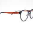 「PROFLEX」はチタン性のテンプルに交互にスリットを掘り、弾力性を備えたシリーズです。アセテートフロントのボストン型で今っぽさを纏っています。クリアグレーのフロントに、テンプルはマットオレンジ。