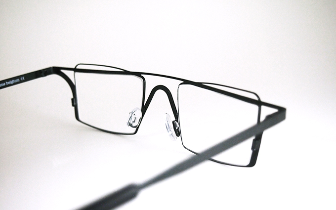 ツートーンのフレームですが、塗り分けしているわけではなく、ふたつのチタン製のパーツをパズルのように噛み合わせています。実に潔く色が分かれています。シンプルですが、精密な加工を施されているシリーズです。